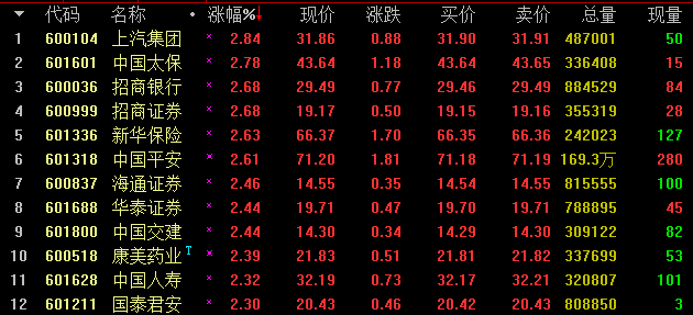 今天沪指死死守住3300点,上证50标的股是最大的功臣,标的股均有不错表现。上汽集团、中国太保大涨近3%,领涨上证50标的股;招商银行、招商证券、新华保险、中国平安、海通证券、华泰证券、中国交建、康美药业、中国人寿等个股亦有不同程度的上涨。