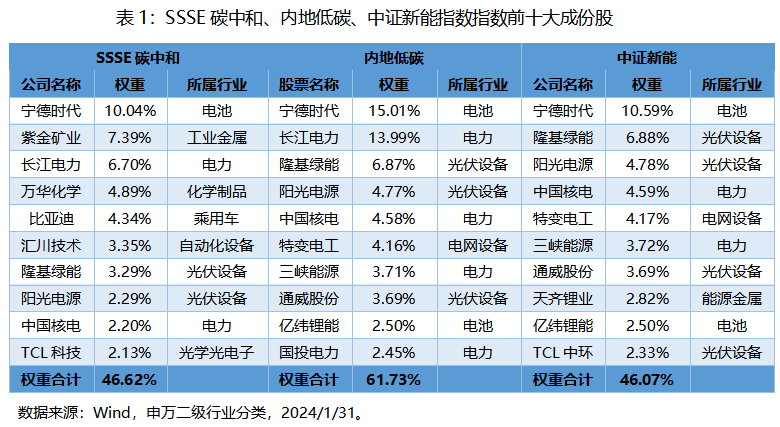 【要点:SSSE碳中和、内地低碳、中证新能走势受权重成份股影响都相对较大】