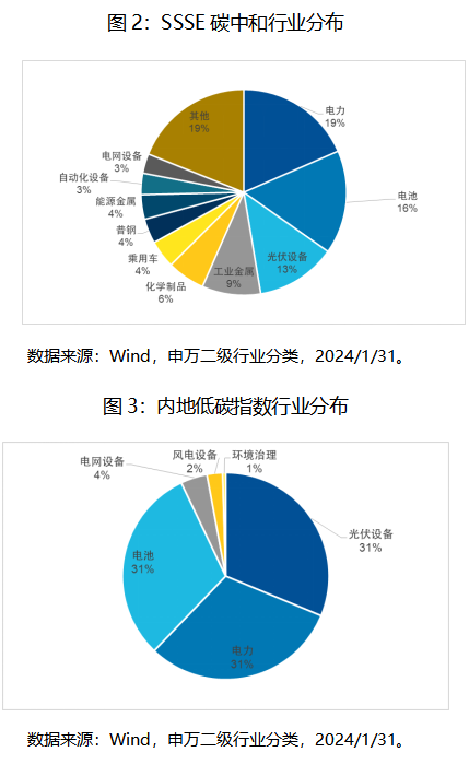 【要点:SSSE碳中和行业分布均衡,内地低碳和中证新能行业分布都较集中】