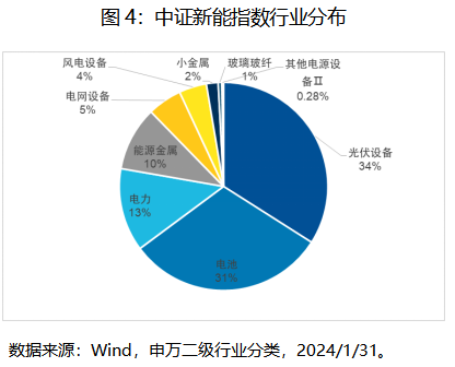 ,行业分布也较为集中,前三大权重行业光伏设备、电池和电力分别占比34%、31%和13%。