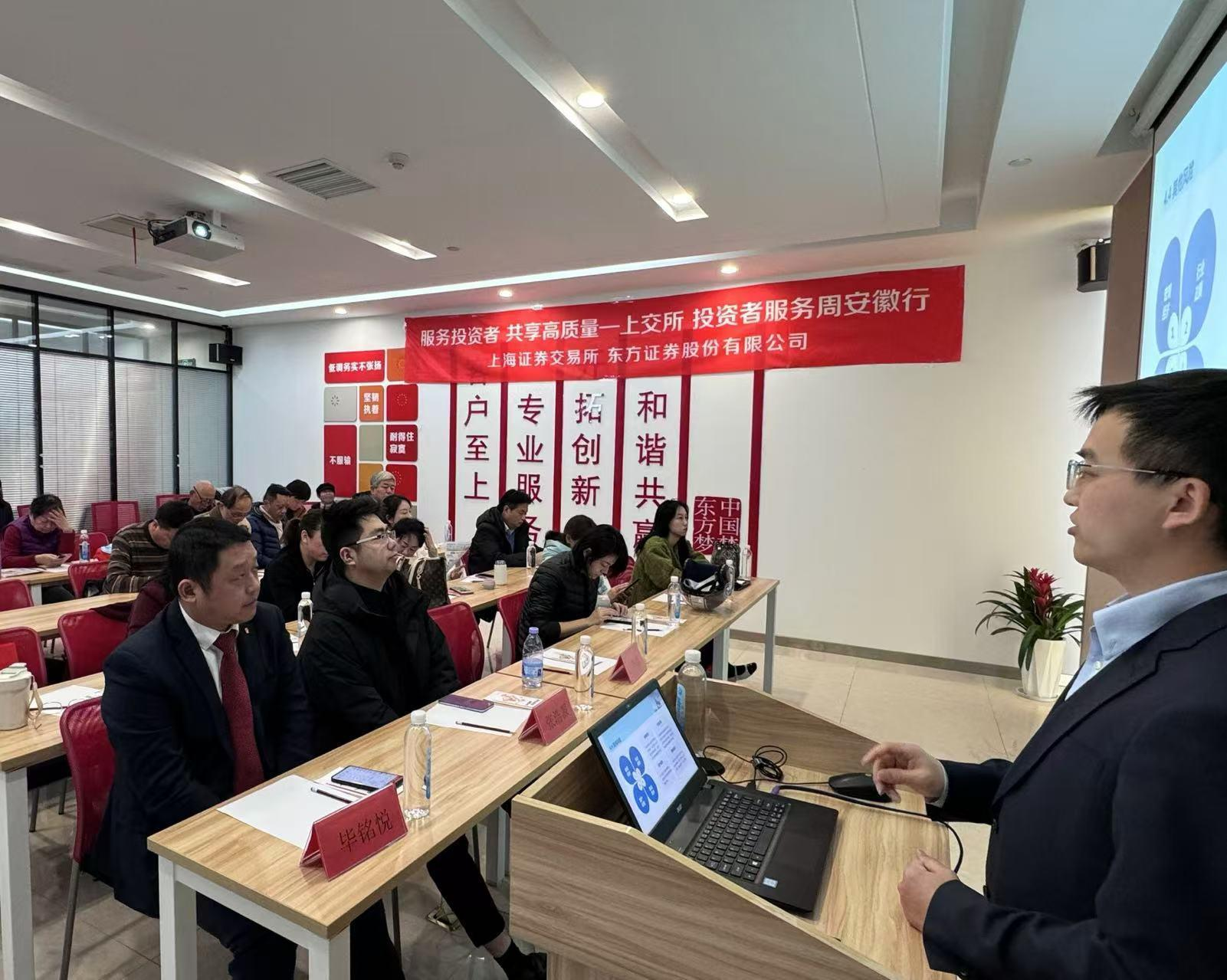 为深入贯彻落实中央金融工作会议精神及新“国九条”部署要求,更有效地保护投资者特别是中小投资者合法权益,上海证券交易所与东方证券于2024年12月20日联合举办了“服务投资者 共享高质量”上交所投资者服务周安徽行活动。本次系列活动旨在向广大中小投资者普及股东权益知识,引导更多投资者提高风险防范意识,积极行权维权,践行理性投资、价值投资、长期投资理念。