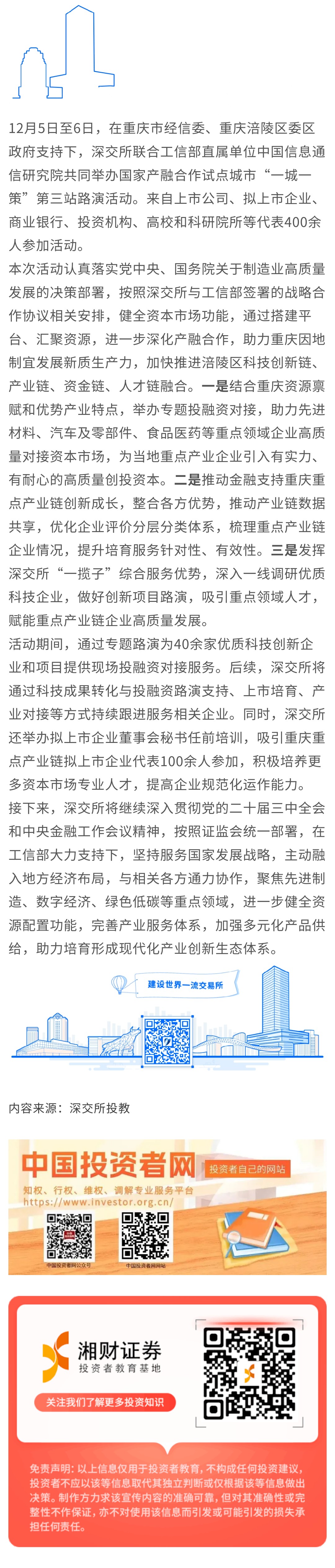 【深交所投教】深交所举办国家产融合作试点城市“一城一策”重庆涪陵站路演活动
