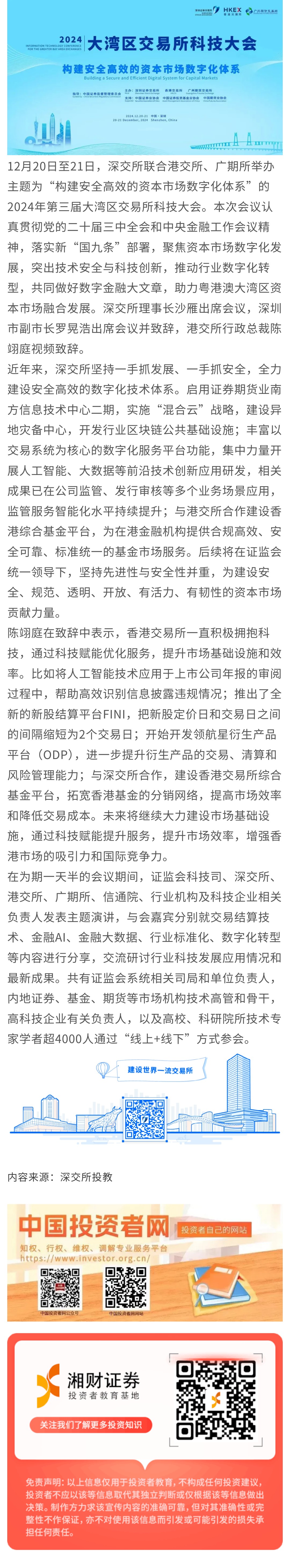 【深交所投教】2024年大湾区交易所科技大会在深交所举办 推动构建安全高效的资本市场数字化体系