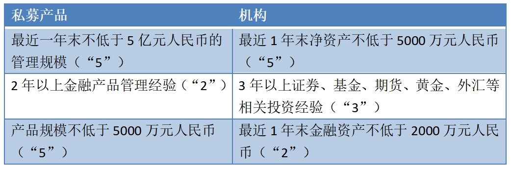 当然,根据《证券期货投资者适当性管理办法》的规定,机构投资者通过签署SAC协议的方式交易场外期权,其自身得满足一定条件,其中权益类场外期权的要求最严格,有所谓的“525”和“532”资质要求(如下表),而商品类场外期权只要求《证券期货投资者适当性管理办法》规定的专业机构投资者。