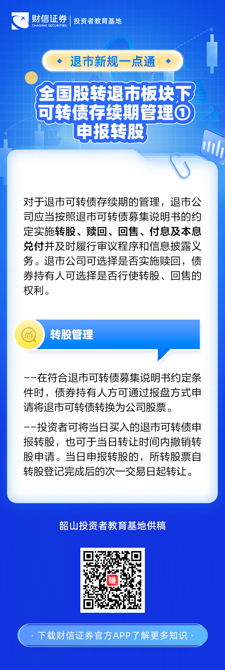 退市新规一点通丨全国股转退市板块下可转债存续期管理①申报转股