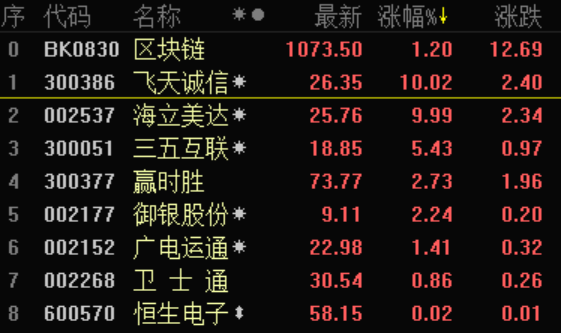 R3区块链联盟宣布,中国平安成为该联盟的第一家中国成员企业。周三早盘区块链概念即表现强势,飞天诚信一字封涨停,海立美达开盘涨停,三五互联、赢时胜、御银股份涨逾2%。