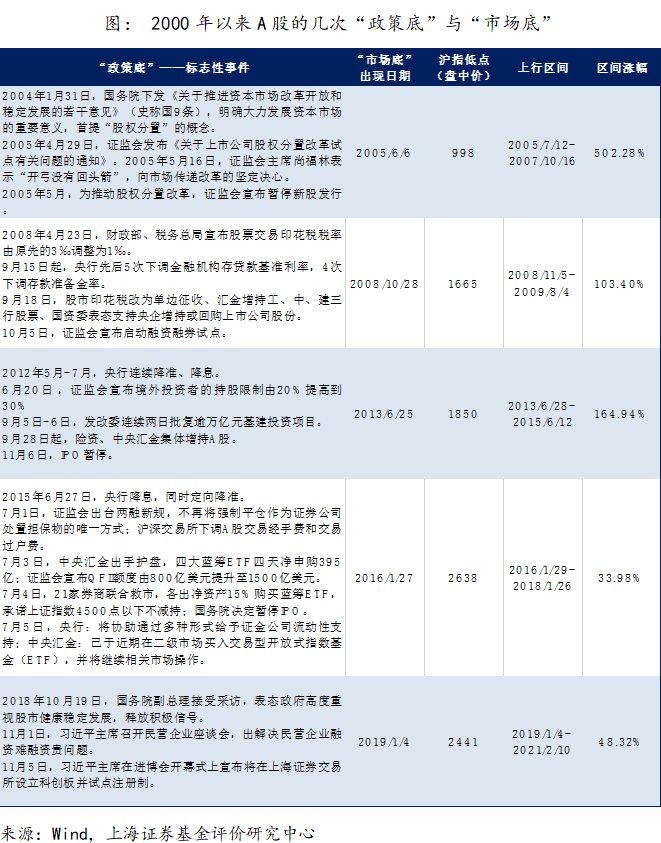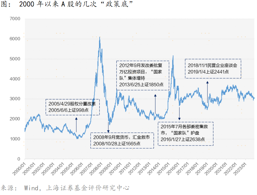 自2000年以来,A股出现过几次比较明显的“政策底”,分别出现在2005年、2008年、2012年、2015年和2018年。