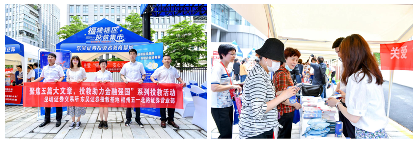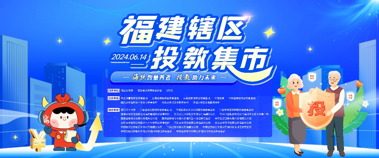 为全面贯彻中央金融工作会议精神,更加有效地保护投资者合法权益,提升投资者服务质效,福建证监局、福建省证券期货业协会、财联社联合中金财富投教基地、山西证券投教基地、东吴证券投教基地、中银证券、华林证券投教基地、国信证券福州五一中路证券营业部、兴业证券投教基地、华福证券投教基地等于6月14日上午在福建老年大学主办“海丝智慧养老 投教助力未来”投教集市活动,福建辖区20余家金融机构和投教基地共同参与。