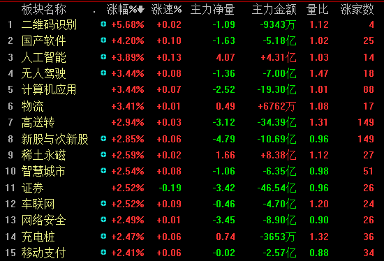 财联社23日讯:周三沪深两市小幅低开,随后沪指在3000点附近展开震荡,但权重股低迷,上冲乏力,几次冲高均很快回落。午后开盘沪指一度维持震荡,临近尾盘在券商股的带领下持续拉升翻红,收复3000点,创业板涨逾1.6%。盘面上,互联网金融、券商、无人驾驶、高送转、充电桩等板块涨幅居前,军工、银行等板块跌幅居前。