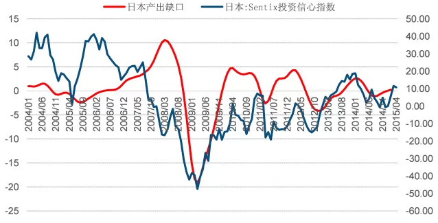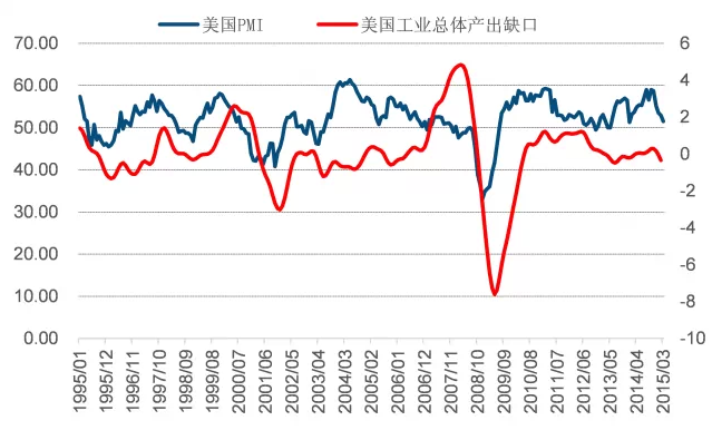 根据一季度以来全球经济运行的结果来看,这一逻辑随着经济周期的运行被证实。欧元区从2014年12月到2015年出现了明显的反弹,消费信心指数和投资信心指数在今年一季度大幅回升,PMI指数也从去年1月份开始大幅回升,同时日本的产出缺口和消费者信心指数同样出现了回升。相比之下,美国短周期在一季度出现了明显的回落,美国与其它OECD主要国家短周期收敛,美元指数在100左右出现阶段性高点,并在高位出现了震荡。