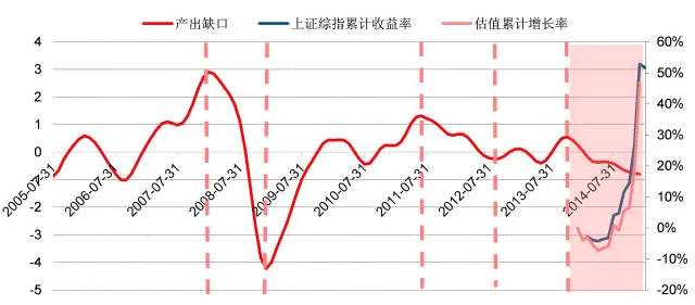 这种判断依然有史可循,1986年8月份原油价格见底企稳回升,随后1个月内其它大宗商品企稳回升,在1986年9月,所有的资源品股票在短期内产生了一波价格反弹逻辑,当月平均反弹13%,大盘反弹5.47%。随后,资源品和市场大盘指数出现了震荡。通过产出缺口衡量的短周期底部在1986年9月份,而根据我们的经验,库存周期下行期产出缺口衡量的底部往往具有领先性,可以看到1987年2月份,股市在对于短周期企稳复苏的共识下反弹,资源股同样有较大幅度的反弹。因此,对于资源股来讲,在价格反弹和市场对于经济周期企稳复苏确认之际,都会有明显的超额收益。