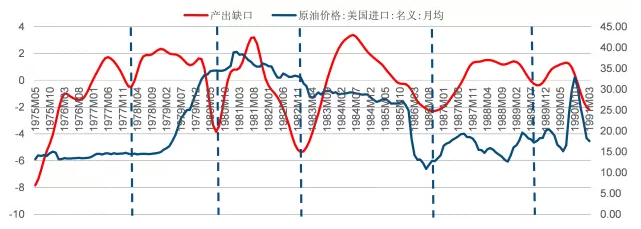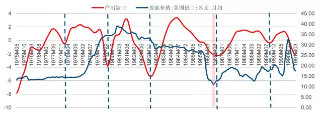 图:原油价格在1986年8月见底,产出缺口9月反弹