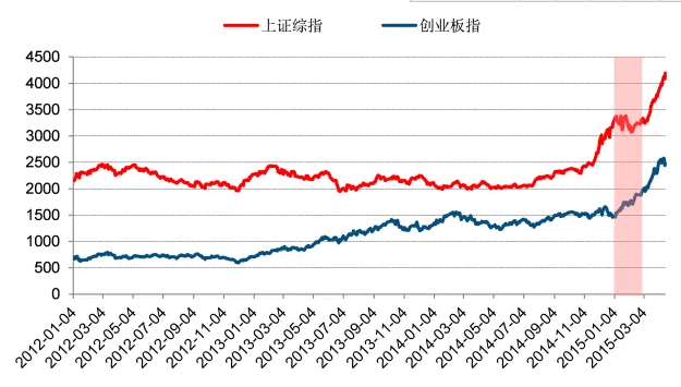 进入3月份,市场逐渐进入了牛市的新阶段,随着两会期间领导人表达了对于当前经济下行和通缩的担忧,也增强了市场对于在2季度政策发力宽松持续的预期,同时总理在两会上对于调结构也有力挺的表态,对于“互联网+”、高端装备制造和能源革命的支持也达到了新的高度。经过牛市11月份底到12月份蓝筹股修复的指数行情,以及1-2月份热点扩散阶段成长白马领先的成长股行情,3月份之后市场对于牛市的理解更加理性。随着支撑牛市的三大逻辑——即我们在《股权时代,重估中国》提到的牛市“改革深化、流动性和稳增长”三大逻辑——在这一阶段同时出现了明显的改善,3-4月份的市场呈现以下特质。
