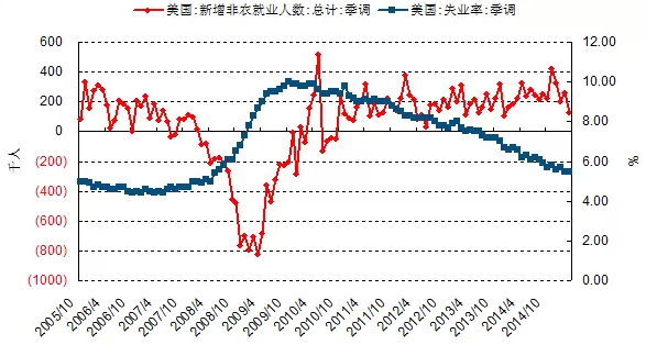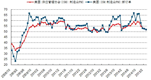 (2)2013年三季度开启的美国库存周期第二周期在2014年都处于主要上升阶段,上行期维持了17-18个月左右,在2015年上半年有可能出现调整,10月份回落的PMI数据是征兆。但是这个短周期调整是较为短暂的。