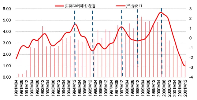 图:1991.04-2001.12美国实际GDP增速和产出缺口