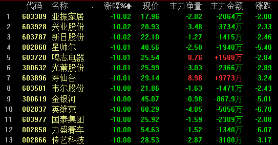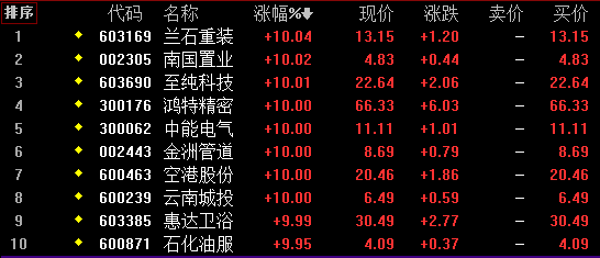 伴随着市场上攻力量的不足,两市除未开板的次新股外,仅兰石重装、石化油服、至纯科技、中能电气、空港股份、云南城投等10只个股封死涨停板。