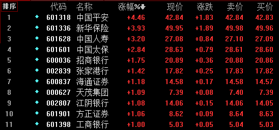 整个市场的个股多数表现不佳,在这种情况下指数的跌幅依然不大,金融股的全力护盘起到了极其重要的作用。中国平安、新华保险、中国人寿、中国太保等保险股成为今天金融股中的领涨股,招商银行、张家港行、海通证券、天茂集团、江阴银行等个股亦有不错表现,