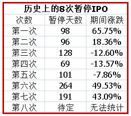 据统计,此前A股IPO共有八次不同原因的暂停,最短暂停时间69个交易日,最长暂停时间超过一年。在这八次暂停中,过半数A股实现不同程度上涨。