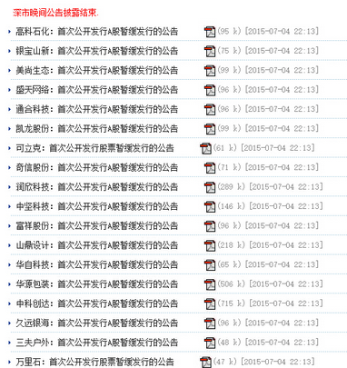 财联社4讯,今日晚间,上交所公布了安记食品、读者传媒、思维列控等10家公司暂缓发行的公告。深交所刊登万里石,三夫户外等18家公司暂缓发行公告。此前有消息称IPO发行暂缓,周五申购新股全部退款。