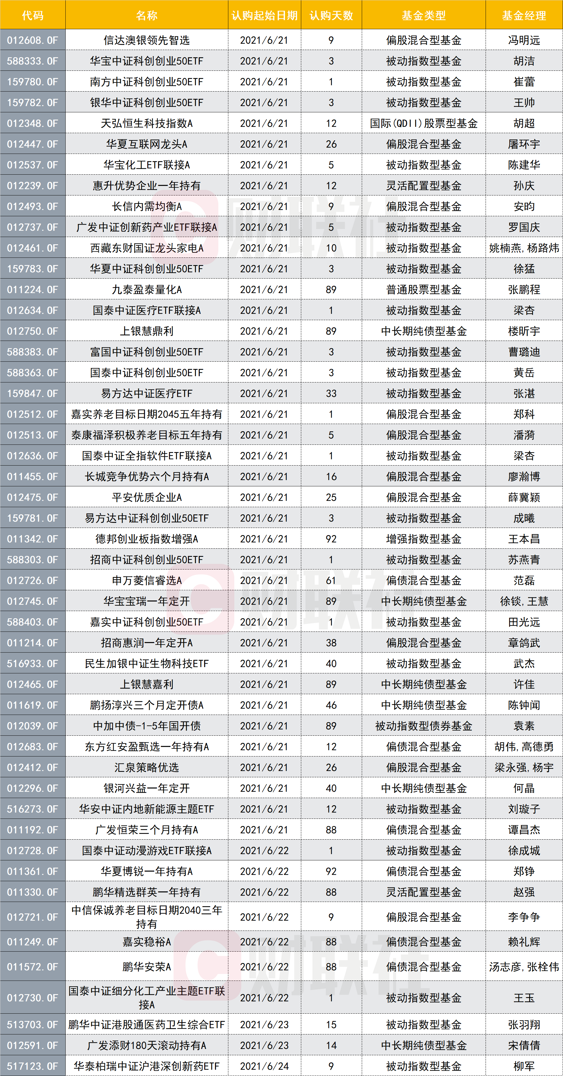 在这些产品中,包括了9只备受关注的科创创业50ETF,这几只产品将会在6月21日开盘正式发行。记者了解到,作为首批科创创业50ETF,这9只产品备受市场期待,同时发行产品的各家基金公司也相当重视。