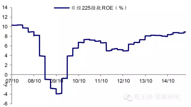 经济好转还较微弱,企业盈利略有改善。宽松政策并未给日本经济带来明显好转,日本GDP同比从金融危机的-9%恢复至0附近震荡后毫无好转迹象,日本经济继续进入漫长的低迷期。企业盈利能力略有改善,但相较于美国企业13%的ROE水平和德国企业10%的ROE水平,日本企业8%左右的ROE还有待提高。